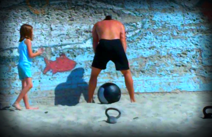 We woke up this morning, took a Dynamax and some kettlebells down to the beach and knocked out an awesome WOD.