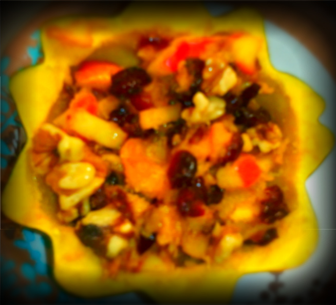 5. After squash is soft, scoop out the meat and toss it in the pan with the apple mixture
